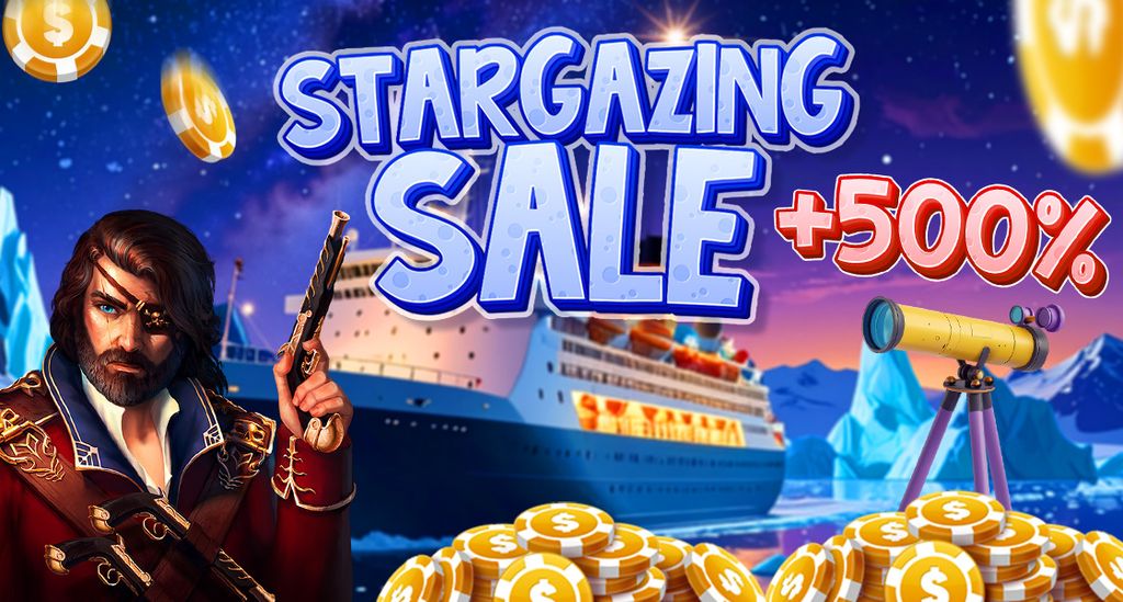 Sieh nach oben und greif nach den Sternen – am 5.1. hast du klare Sicht auf leuchtende Slotpark-Dollar-Galaxien. Hol dir +500% im Shop!