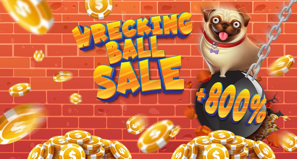 Time to make way for this deal: Wrecking Ball Sale kicks off on 15.11 and hits the shop with a whopping 800% more Slotpark Dollar in the shop.🏗️💥 Grab your pack of your choice before this offer gets smashed!
