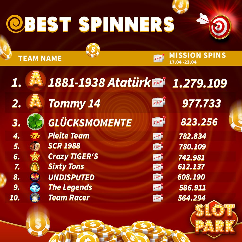 The Top 10 Teams with the highest number of Team Missions Spins are rewarded with a well-deserved bonus!